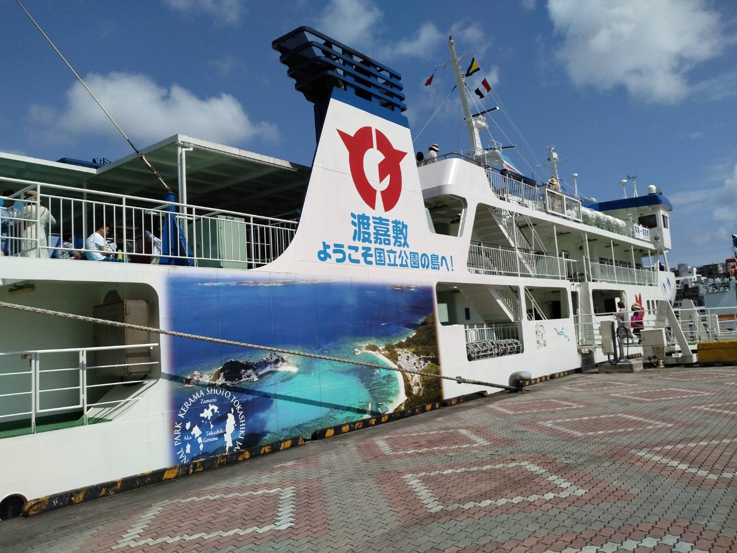 気合いで9時に起きてフェリー乗り場に向かいました。片道70分で渡嘉敷島に向かいます。