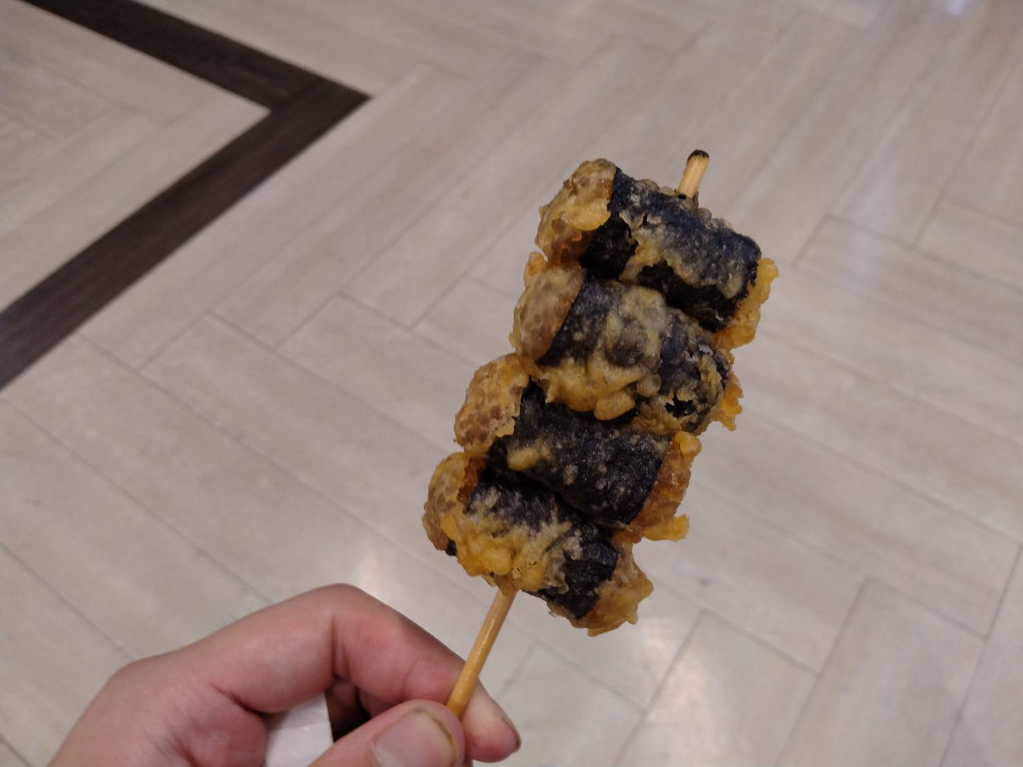 レジ前のホットスナックはありますが、からあげクンとLチキは無かったです。この春雨の海苔巻き揚げみたいなのを食べました。