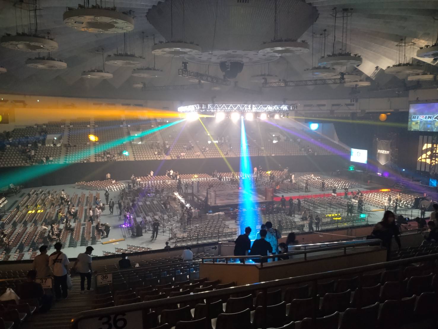 ↓入場開始直後なので人がまばらですね。本戦の頃にはいっぱいでした。ライトが眩しい。