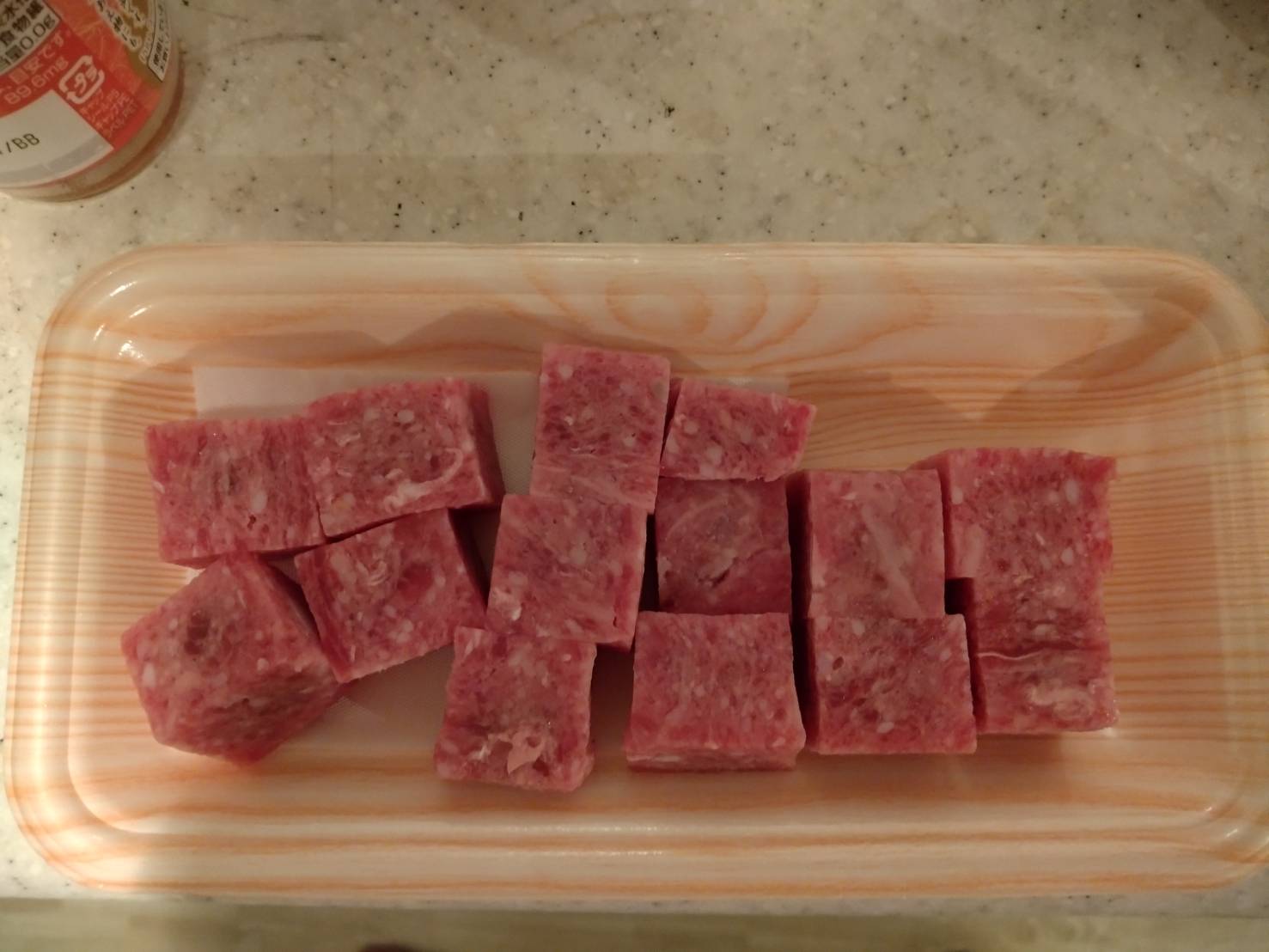 ちなみに僕の中でサイコロ状の良い肉は偽サイコロステーキです。成形肉で作られたのが本物のサイコロステーキです。